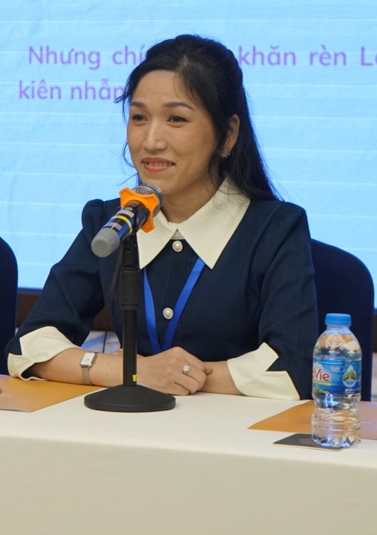Tại sự kiện, chị chia sẻ về cách một người khiếm thị có thể “biến đôi tai thành đôi mắt”, dùng trình đọc màn hình để thu âm 500 trang sách, luyện tập để tìm ra chất giọng riêng và xây dựng thương hiệu cá nhân từ những công việc nhỏ nhất.