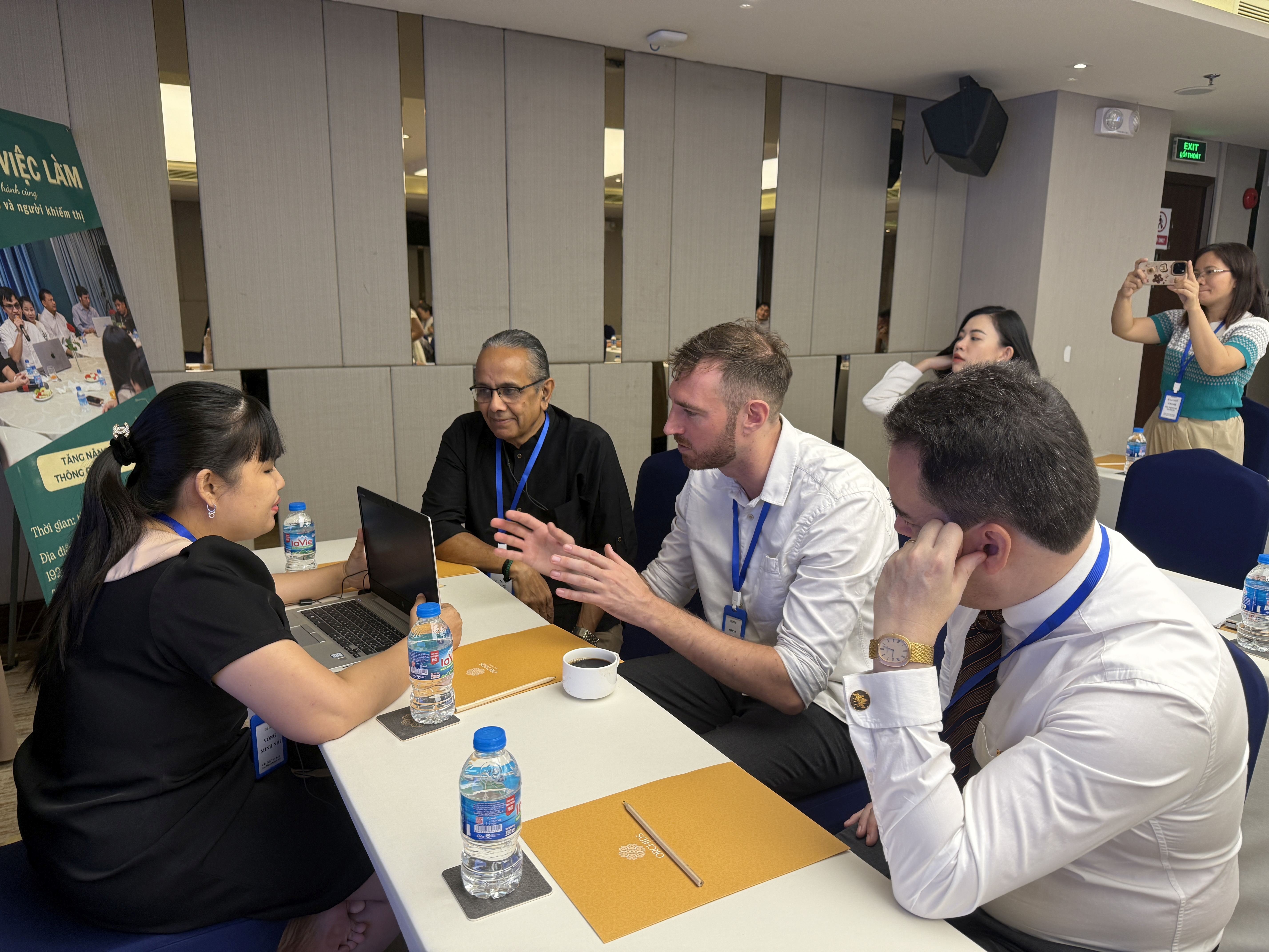 Hai diễn giả của Đại học RMIT Việt Nam là ông Simon O’Donoghue – cố vấn về đa dạng, công bằng và hòa nhập – và anh Nguyễn Minh Tuấn – chuyên viên tiếp cận cộng đồng, đồng thời là một người khiếm thị đang làm việc trong môi trường hòa nhập tại RMIT. Từ hai vị trí khác nhau, một người phụ trách hoạch định và triển khai chính sách, một người trực tiếp trải nghiệm môi trường đó mỗi ngày, họ đã đưa ra một bức tranh toàn diện: điều chỉnh hợp lý được hiểu như thế nào, tại sao doanh nghiệp thường e ngại, và khi được triển khai đúng cách, điều chỉnh hợp lý có thể giúp giải phóng năng lực của người khiếm thị và gia tăng giá trị cho chính doanh nghiệp ra sao.